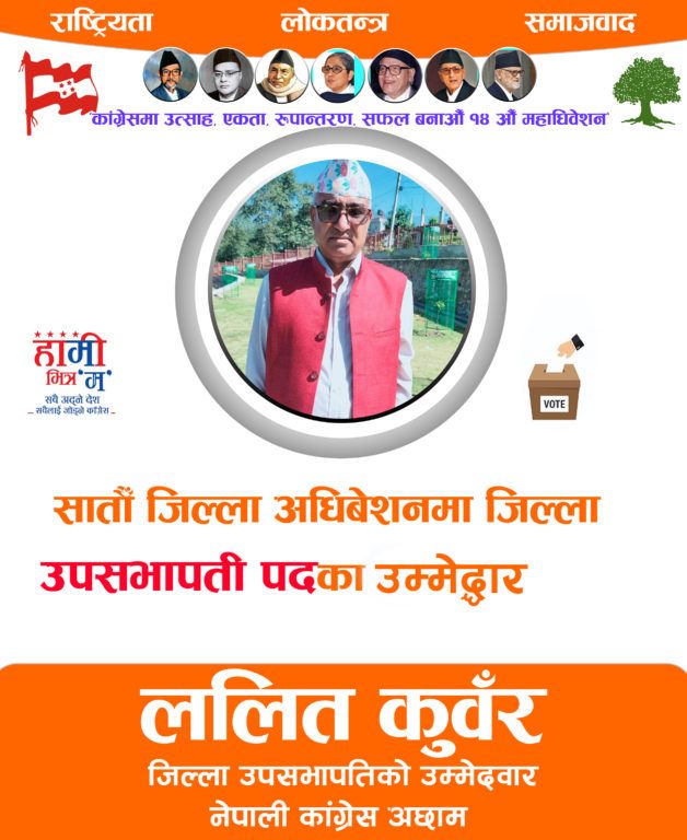 अछाम : नेपाली कांग्रेस अछामको जिल्ला उपसभापती पदका लागि युवा नेता ललित कुवँरले उम्मेद्धारी घोषणा गरेका छन् ।