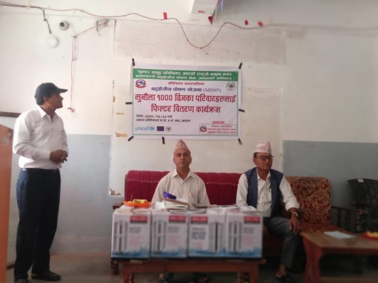 अछाम : बहुक्षेत्रीय पोषण योजना अन्र्तगत साँफेबगर नगरपालिका वडा नम्बर ४ मष्टामान्डौका सुनौला १००० दिनका परिवारहरुलाइ फिल्टर बितरण कार्यक्रम साँफेबगरमा सम्पन्न भएको छ ।