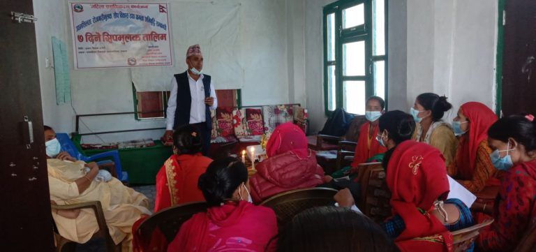 पञ्चदेवल विनायक नगरपालिकाका १५ र तुर्माखाँद गाउँपालिकाका १५ गरी ३० जना महिलाहरुलाई सीप विकास तथा क्षमता अभिवृद्धीको तालिम सञ्चालन गरिएको सामाजिक विकास कार्यालय अछामका कर्मचारी कृष्ण उपाध्यायले जानकारी दिए ।