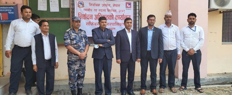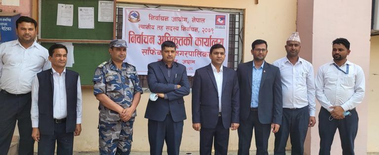 साँफेबगरका लागि संघिय मामिला तथा सामान्य प्रशासन मन्त्रायलका उपसचिव याम नारायण गौली निर्वाच अधिकृत भएर आएका छन् । यस्तै जिल्लाका अन्य पालिकामा समेत निर्वाचन अधिकृृतको कार्यालयहरु स्थापना भएका छन् ।