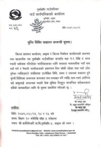 वडा नं. १ देखि ८ सम्म स्थायी बसोबास गरिरहेका नागरिकहरुले नागरिकता लिन बाकि तथा नयाँ उमेर पुगेका व्यक्तिहरुले घुम्ती शिविरमा आवश्यक कागजात तथा सनाखत गर्ने व्यक्ति साथ स्वयं उपस्थित भई आफूलाई आवश्यक भएको सेवा सुविधा लिन तुर्माखाँद गाउँपालिका अध्यक्ष डम्बर बिसीले आग्रह गरेका छन् ।