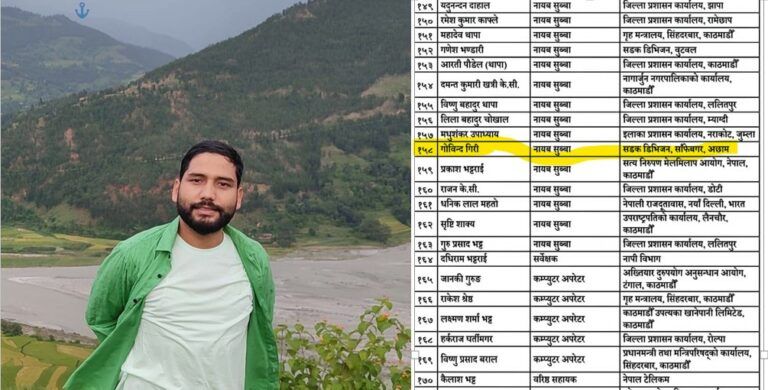 सडक डिभिजन कार्यालय साँफेबगरमा नायव सुब्बा पदका कार्यरत गिरीलाई जनसेवा श्री पदकबाट बिभुषित गरिने भएको हो