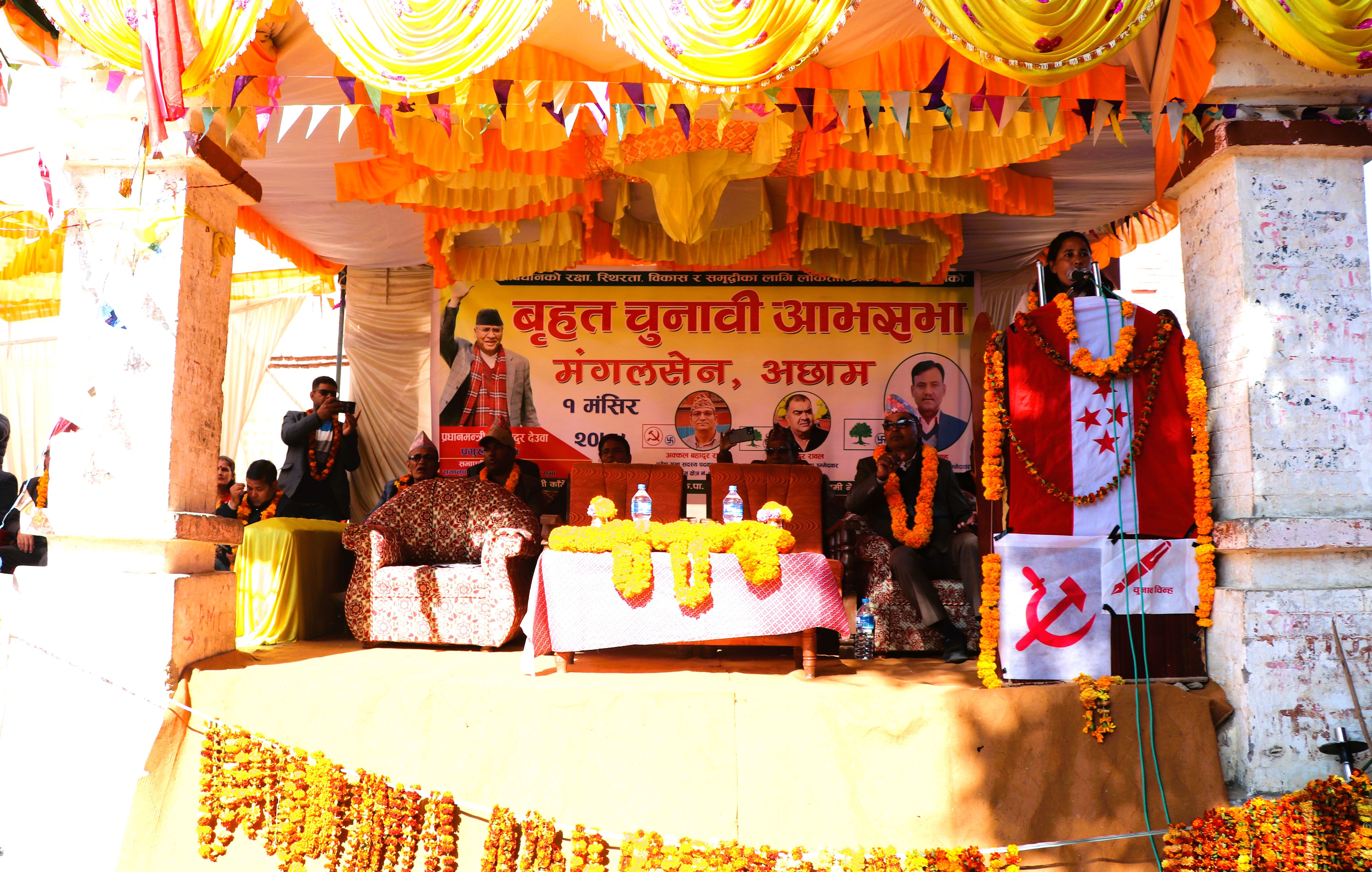 अछामको मंगलसैनमा आयोजित सत्ता गठबन्धनको चुनावी सभा (तस्विरहरु)