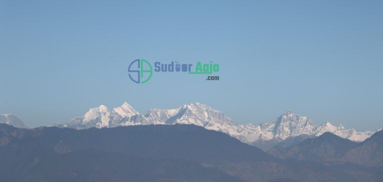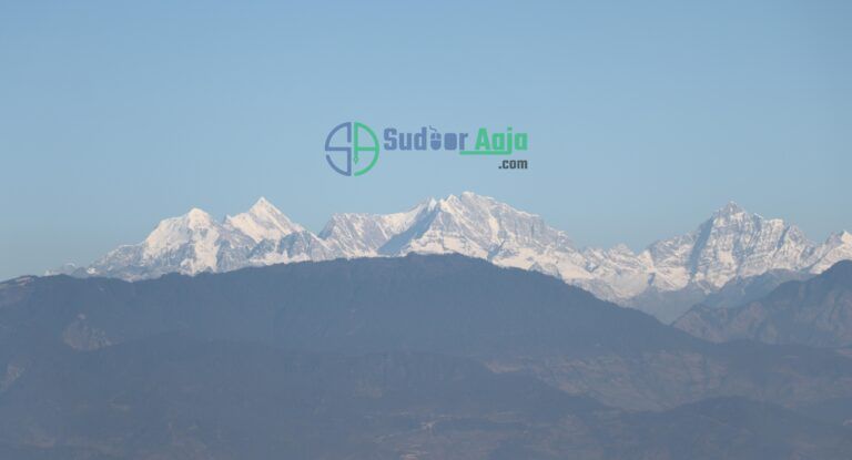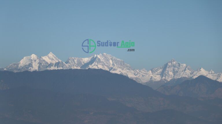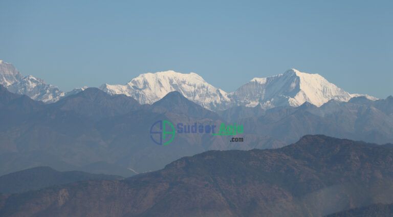 अछाम । अछाम जिल्लाको मंगलसैन नगरपालिका वडा नं. ६ हरिनगर ठुलासैन बजार बाट देखिएको हिमालको दृष्यहरु । फोटोमा ।