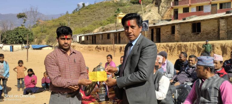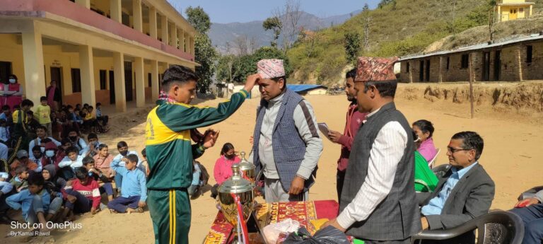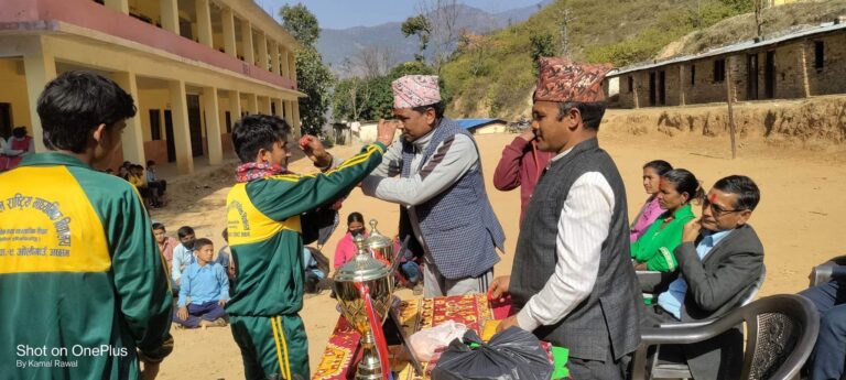 विद्यालयबाट सहभागी ३३ जना खेलाडी र प्रशिक्षकलाई नगरबाट प्राप्त नगद, जिल्ला समन्वय समिती प्रमुख ललित बहादुर कुवर, विद्यालय प्रशासन, वडा नम्बर ८ का अध्यक्ष ज्ञानेन्द्र बहादुर बोहरा, ९ का अध्यक्ष पदम बहादुर बोहरा र अभिभावक राजेन्द्र बहादुर रावलले प्रदान गर्नु भएको नगद रकम हस्तान्तर गरिएको थियो ।