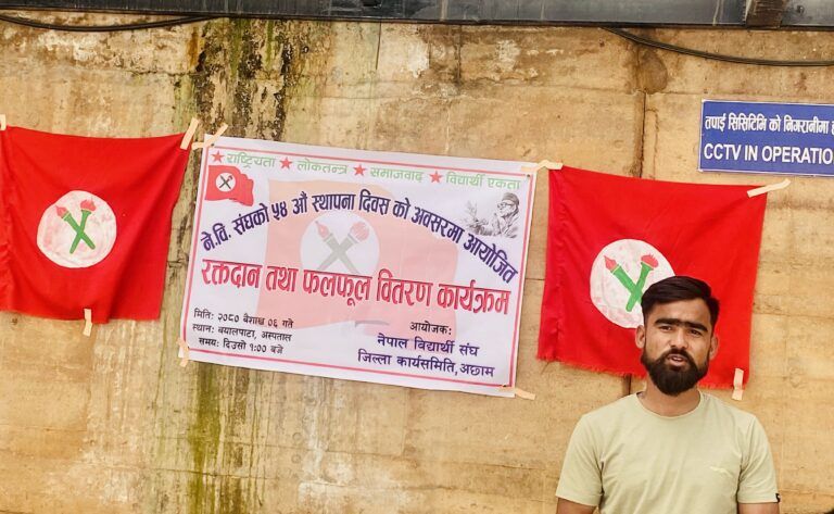 अछाम । नेपाल बिद्यार्थी संघ अछामले बयालपाटा अस्पतालमा रक्तदान तथा अस्पतालमा भर्ना भएका बिरामीलाई फलफुल बितरण गरेको छ । संघको ५४ औँ स्थापना दिवसको अवसरमा रुक्तदान तथा अस्पतालका बिरामीलाई फलफुल वितरण गरिएको हो ।