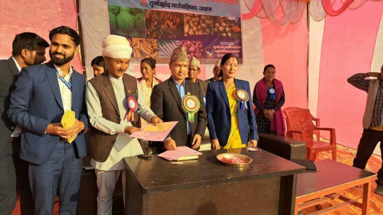अछाम : तुर्माखाँद गाउँपालिकाले कृर्षि मेला प्रदर्शनी तथा कृषकलाई सम्मान गरेको छ । गाउँपालिका भित्र रहेका कृर्षक हरूलाई प्रोत्साहन गर्ने तथा उत्पादन कृर्षि सामाग्रीलाई बजारीकरण गर्ने उद्देश्यले आइतबार एक भव्य कार्यक्रमका बिच कृर्षि मेला कार्यक्रम सम्पन्न भएको हो ।