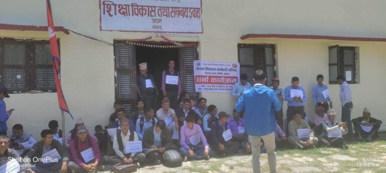 अछाम : विद्यालय कर्मचारी परिषदको केन्द्रीय निर्देशन अनुसार अछाम जिल्लाका कर्मचारीले चौथो दिन धर्ना कार्यक्रमलाई निरन्तर जारी राखेका छन ।