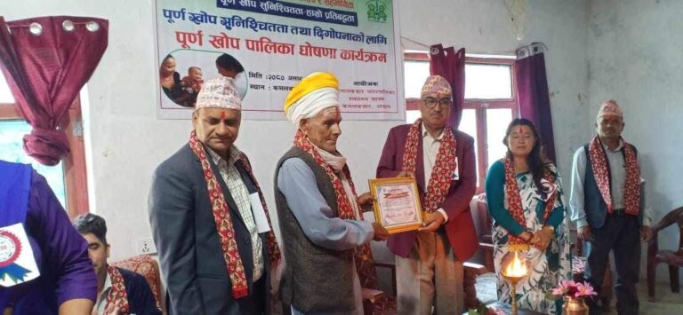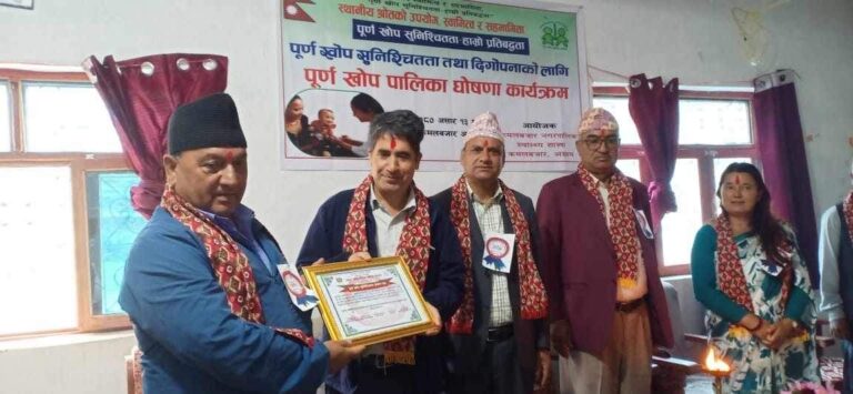 अछाम । जिल्लाको कमलबजार नगरपालिकालाई कार्यक्रमका बिच पुर्ण खोप पालिका घोषणा गरिएको छ ।