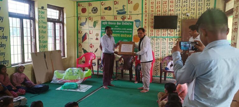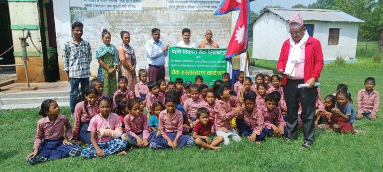 जस अन्तर्गत कृषी विकास बैँक टीकापुर शाखाले संस्थागत सामाजिक उत्तरदायित्व अन्तरगत कैलालीको जानकी गा पा वडा नं ३ को सुवर्णपुरमा रहेको भृकुटी माध्यमिक बिधालय र जानकारी गाउँपालिका कै वडा नं. ५ को श्री रुक्मणि आधारभुत बिधालयलाई सहयोग गरेको छ ।