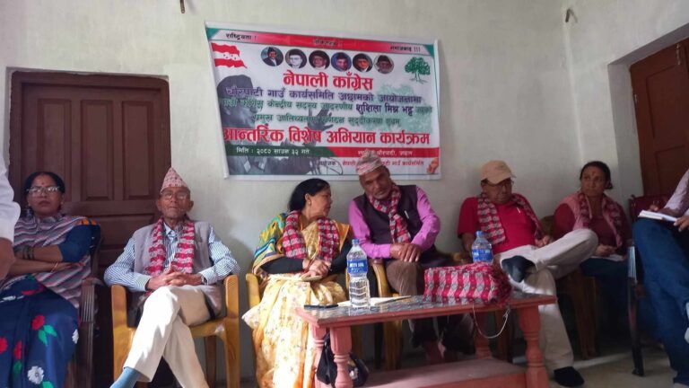 अछाम : नेपाली काङ्ग्रेस अछामको संगठन सुदृढीकरण विशेष अभियान अन्तर्गत चौरपाटी गाउँपालिकाको चौरपाटी बजारमा अन्तरक्रिया कार्यक्रम सम्पन्न भएको छ । गाउँ कार्यसमितिका सभापति देउमल खड्काको सभापतित्वतामा कार्यक्रममा नेपाली कांग्रेसका केन्द्रिय सदस्य तथा अछाम जिल्लाका लागि केन्द्रिय प्रतिनिधि सुशिला मिश्र भट्ट प्रमुख अतिथी रहेकी थिईन् ।