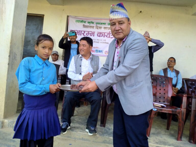 स्थानीय कृषि उपजमा आधारित विद्यालय दिवा खाजा कार्यक्रमको एक कार्यक्रमका विच गाउँपालिकाका अध्यक्ष भीमबहादुर साउदले शुभारम्भ गरे । विद्यालय दिवा खाजा कार्यक्रमको शुभारम्भ गर्दै गाउँपालिकाका अध्यक्ष साउदले दिवा खाजा कार्यक्रमले स्थानीय उत्पादनबाट विद्यार्थीलाई ताजा पौष्टिक आहार प्रदान गर्नुका साथै स्थानीय स्तरमा रोजगारीको अवसर प्रदान हुने धारणा व्यक्त राखे ।