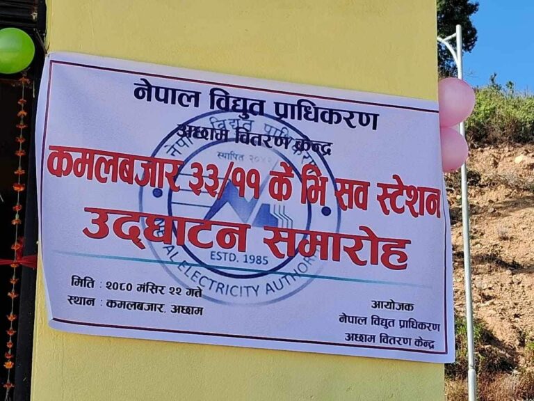 अछाम : जिल्लाको पुर्वि बेल्डको कमलबजारमा रहेको ३३/११ केभि लाइन आज बाट संञ्चालनमा आएको छ। बिगत लामो समय देखि संञ्चालनमा आउन नसकिरहेको सबस्टेसन आज बाट संञ्चालनमा आएको हो ।