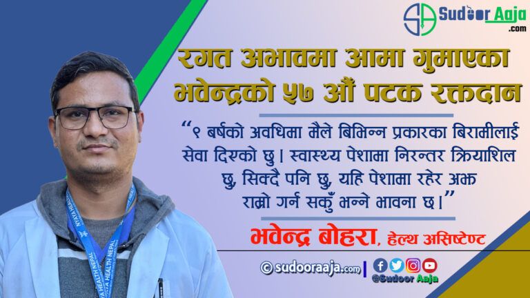 भवेन्द्र बोहरा अछाममा सबैभन्दा बढी रक्तदान गर्ने व्यक्ती भित्र समेत पर्दछन् । उनले हालसम्म ५७ पटक रक्तदान गरिसकेका छन् । रक्तदान गरेर कसैको जीवन जोगाउन पाउदाँ उनलाई आफ्नी आमाको याद आँउछ । म जब रक्तदान गर्छु मेरी आमालाई याद गर्छु, उनि सम्झन्छन ‘गर्भवती भएकी माईली (सौतेनी) आमाको शरिरमा २ प्वाईन्ट मात्र रगत हुदाँ रगत अभावमा अकालमै ज्यान गुमाउनु परेको थियो, रगत नपाएर अकालमै कसैले पनि ज्यान गुमाउनु नपरोस भन्ने चाहान्छन् उनि ।’