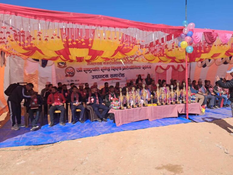 अछाम : मंगलसेनमा पालिका स्तरिय राष्ट्रिपति रनिङ्ग शिल्ड प्रतियोगिता बिहिबार बाट सुरुभएको छ । सामाजिक विकास समितिका संयोजक तथा वडा न ३ का अध्यक्ष बृख बहादुर बोगटीको अध्यक्षतामा भएको कार्यक्रममा नगर प्रमुख पदम बहादुर बोहरा प्रमुख अतिथि रहनु भएको थियो ।