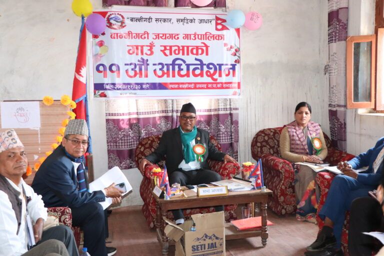 अछाम : जिल्लाको बान्नीगढी जयगढ गाँउपालिकाको हिउदे अधिबेशनको ११ औँ गाँउ सभा सम्पन्न भएको छ । गाँउसभाले चालु र पूजिगत तर्फ गरी जम्मा १ करोड ७९ लाख ७१ हजार ८ सय ४६ रकम बरबारको अनुमाति बजेट पास गरेको छ ।