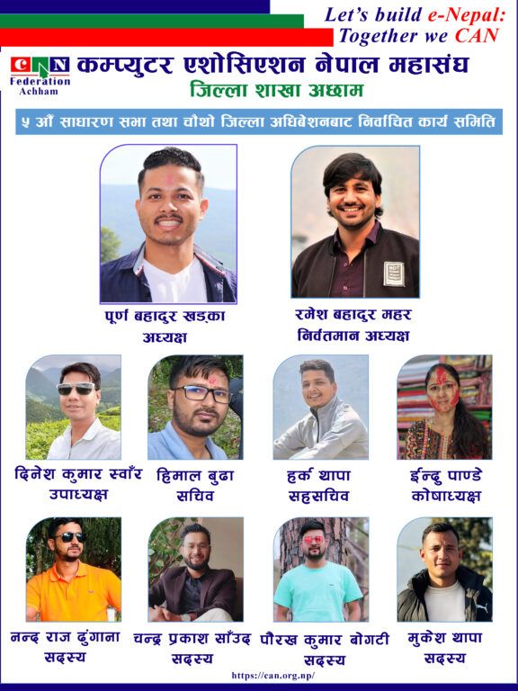 अछाम ः कम्प्युटर एशोसिएशन नेपाल महासंघ जिल्ला शाखा अछामको अध्यक्षमा पूर्ण बहादुर खड्का निर्वाचित भएका छन् । शाखाको चौथो जिल्ला अबिधेशनबाट खड्का निर्विरोध निर्वाचित भएका हुन् ।