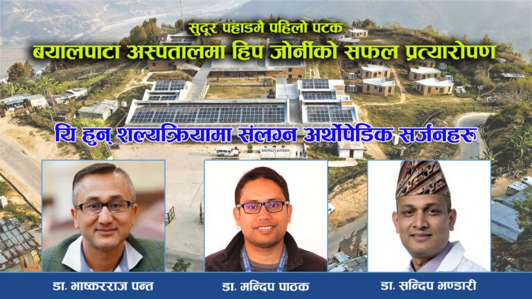 निरोजको पूर्ण हिप जोर्नी प्रत्यारोपणका लागि बयालपाटा अस्पताल पुगेका अर्थोपेडिक सर्जन डाक्टर भाष्करराज पन्तका अनुसार सुदूरपहाड मै पहिलो पटक यस्तो खालको अप्रेशन बयालपाटा अस्पतालमा भएको बताए ।