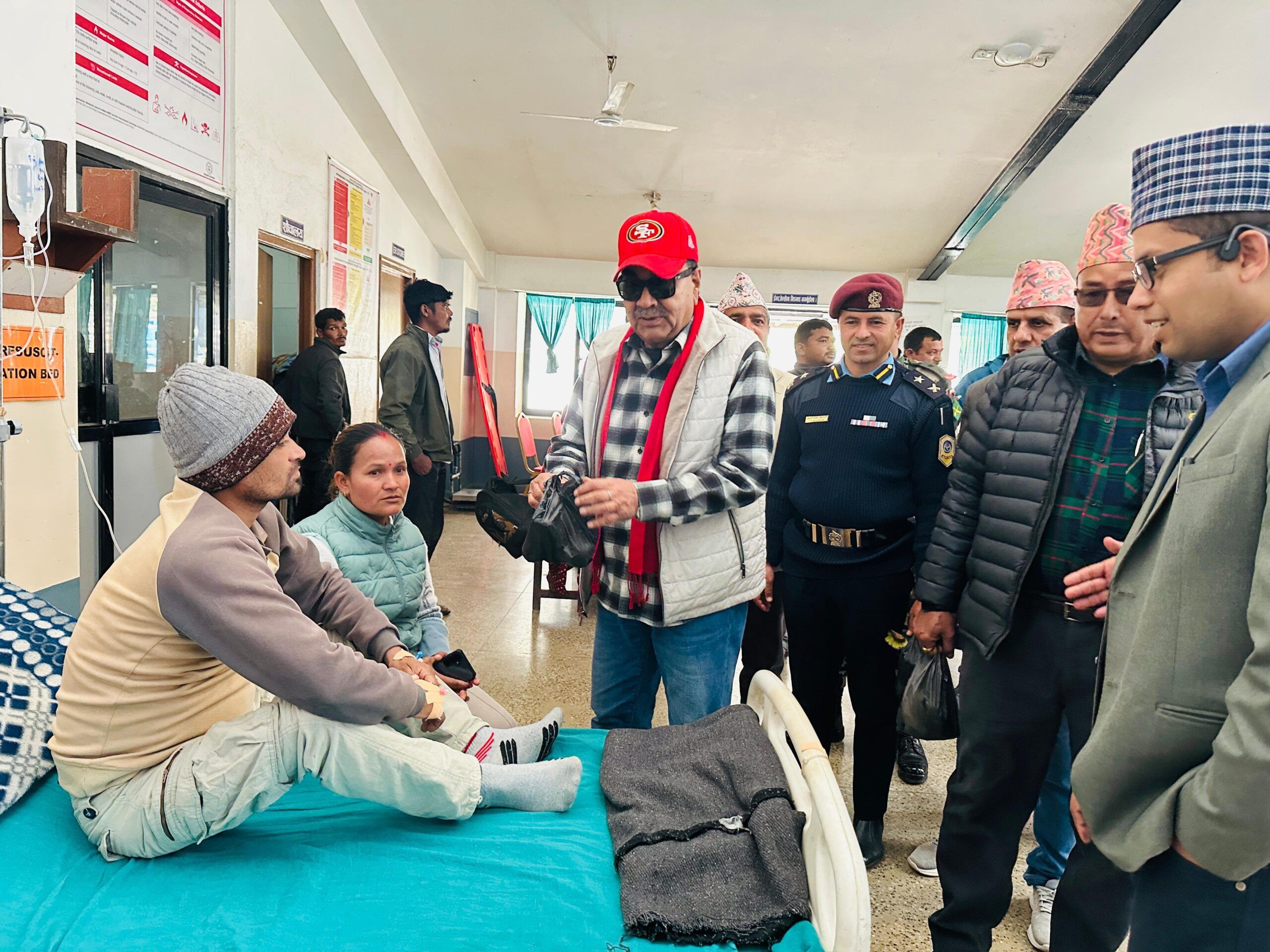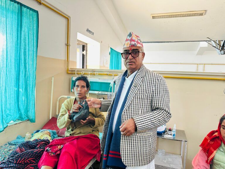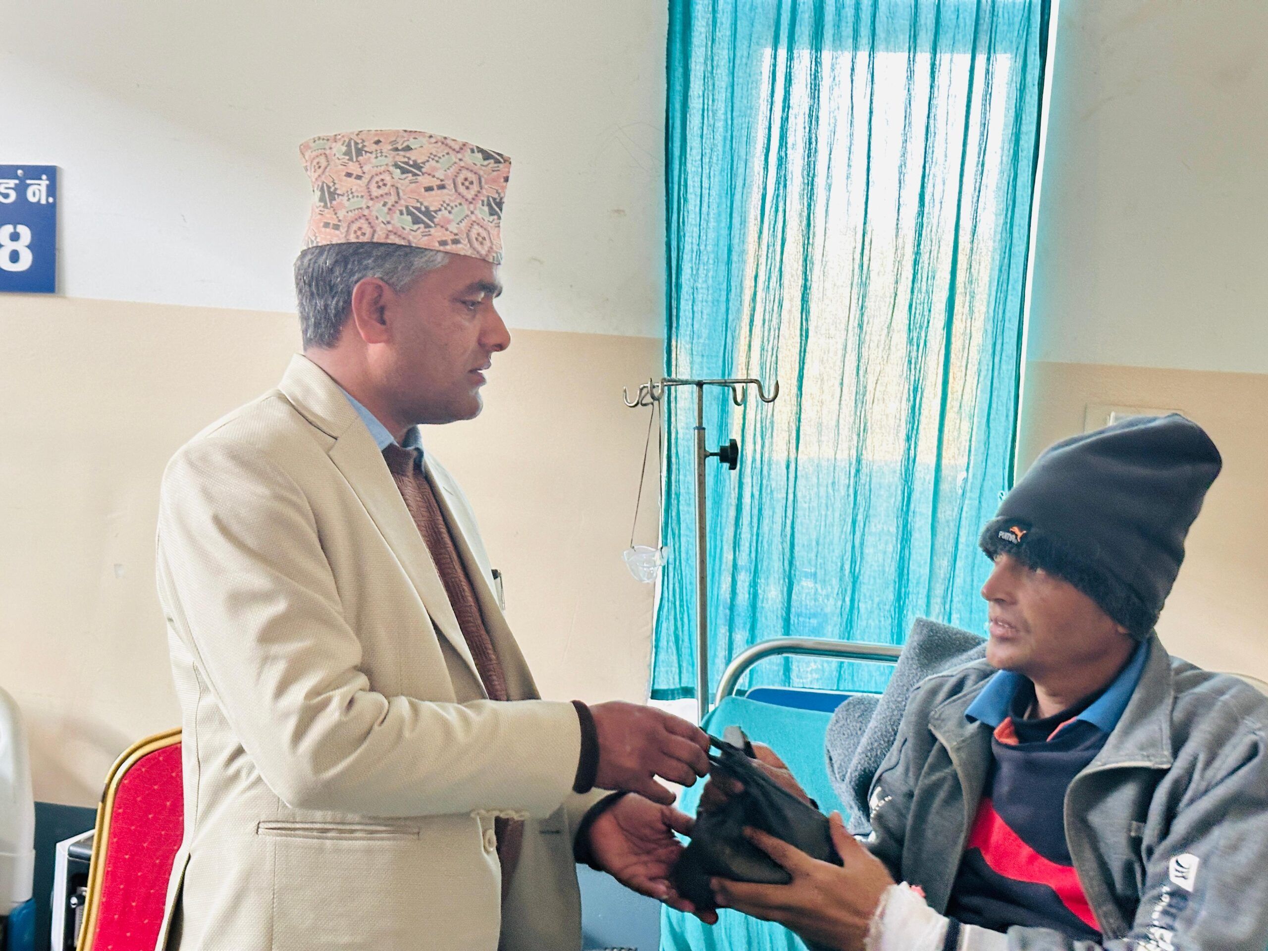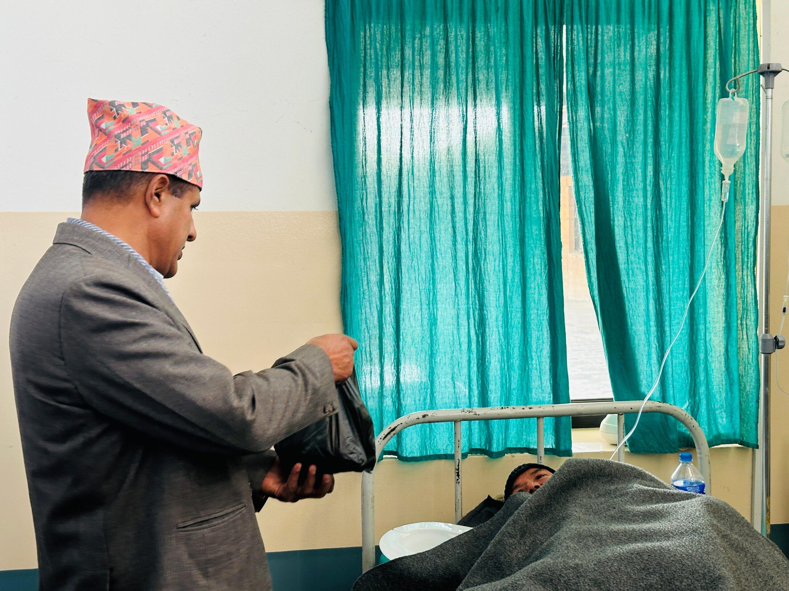 ७५ औँ प्रजातन्त्र दिवसको अवसरमा अछाममा बिरामीलाई फलफुल वितरण