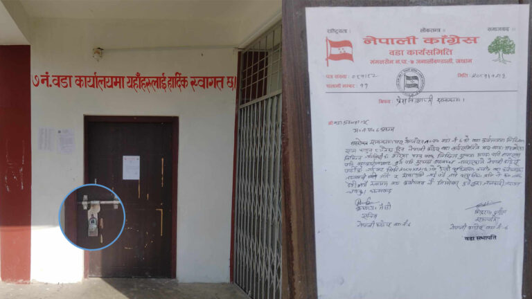 अछाम ः जिल्लाको मंगलसैन नगरपालिका वडा नं. ७ मा अनिश्चितकालिन तालाबन्दी गरिएको छ । सोही वडामा रहेको नेपाली कांग्रेस वडा कार्यसमितिले वडा कार्यालयमा तालाबन्दी गरेको हो ।