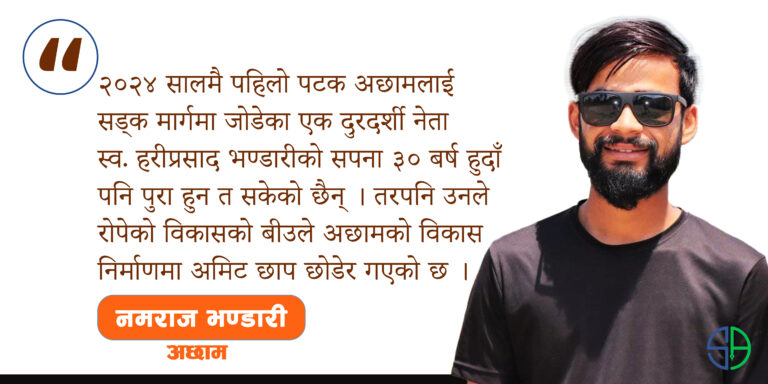 नेपालको सुदूरपश्चिम प्रदेशमा रहेको दुर्गम जिल्ला अछाम दशकौँसम्म दुर्गम, विकासबाट बञ्चित र यातायात सम्पर्कविहीन क्षेत्रको रूपमा चिनिन्थ्यो। अप्ठ्यारा भौगोलिक बनावट, कमजोर पूर्वाधार र सीमित पहुँचले यहाँको जीवनशैली कठिन थियो। यस्तै चुनौतीपूर्ण परिवेशमा एउटा सपना जन्मियो—अछामलाई बाहिरी संसारसँग जोड्ने सपना। र, यो सपना साकार पार्न अघि सरे एक दूरदर्शी र साहसी नेता—स्व. हरि प्रसाद भण्डारी।