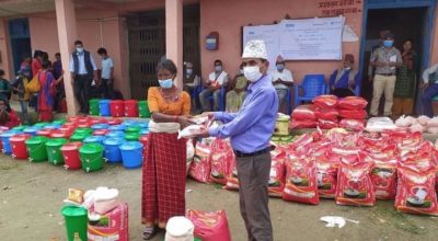 सानपा ४ का काेरोनाभाईरसबाट प्रभावित २० घरपरिवारलाई खाद्यान्न सामाग्री वितरण