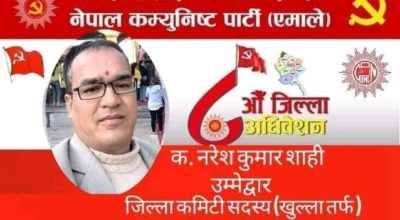पार्टीमा युवाको उपस्थिती बलियो बनाई समाज रुपान्तरण गर्न एमाले जिल्ला सदस्यमा शाहीको उम्मेद्धारी