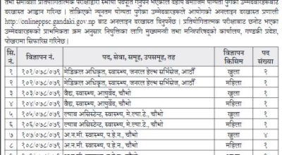 लोक सेवा आयोग गण्डकी प्रदेशले स्वास्थ्यका विभिन्न पदमा ५८४ जनाका लागि विज्ञापन खुलायो