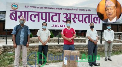 नेकपा नेता डा. रावलले बयालपाटा अस्पतालका लागि पठाएका स्वास्थ्य सामाग्री नगर प्रमुख कुवँरद्धारा हस्तान्त्ररण