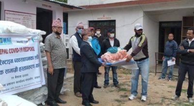 वल्ड भिजन,आस्था र वाक नेपालद्धारा ४ लाखको सामाग्री जिल्ला बिपद ब्यबस्थापनलाई हस्तान्त्रण