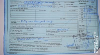 पञ्चदेवल बिनायक नगरपालिकाको बिपद् व्यावस्थापन कोषमा आर्थिक सहयोग जुट्दैँ, समाजसेवी भद्र शाहीले गरे ५१ हजार जम्मा