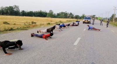 लकडाउन उल्लङ्घन गर्ने ५० जनालाई सडकमै ‘पुसअप’