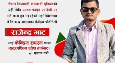 निजामती कर्मचारी युनियनको केन्द्रिय सदस्यमा सुप बाट भाटको उम्मेदवारी घोषणा !
