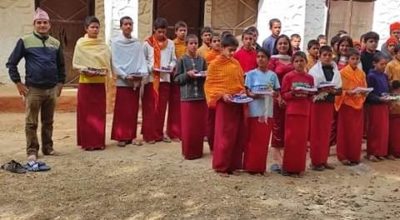 जन्मदिनको अवसरमा बैधनाथ बेदविश्रामका बटुकलाई शैक्षिक सामाग्री वितरण