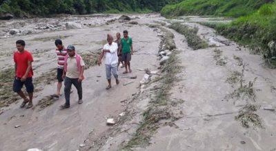 बाढिले क्षति गरेको खेतको नगरप्रमुख बोहराद्धारा स्थलगत अनुगमन