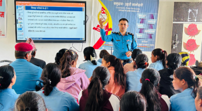 चेतना फैलाउन गाउँका विद्यार्थी पढाउँदै अछाम प्रहरी