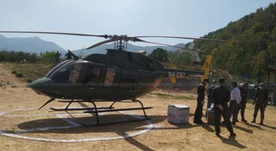 स्वास्थ्यकर्मी बोकेर हेलिकोप्टर आयो सुरक्षा सामग्री आएन..