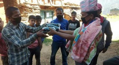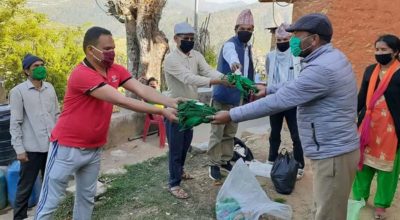 सामाजिक दुरी कायम गर्दै वडाध्यक्ष भण्डारीले गरे स्वास्थ्य सामाग्री बितरण