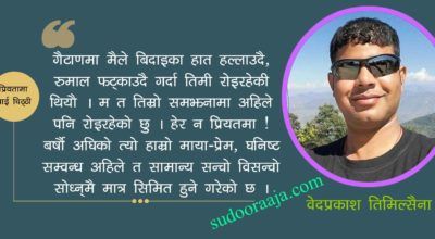 मैले बिदाइका हात हल्लाउदै गर्दा तिमि रोइरहेकी थियौ