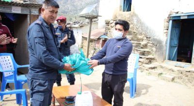 बझाङ बाजुरा सहयोग समुहद्धारा प्रहरीलाइ मास्क र सेनीटाइजर सहयोग