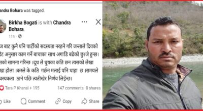 एमाले मङ्गलसैन नगर कमिटी अध्यक्ष बोगटीद्वारा पार्टी छोडेको घोषणा
