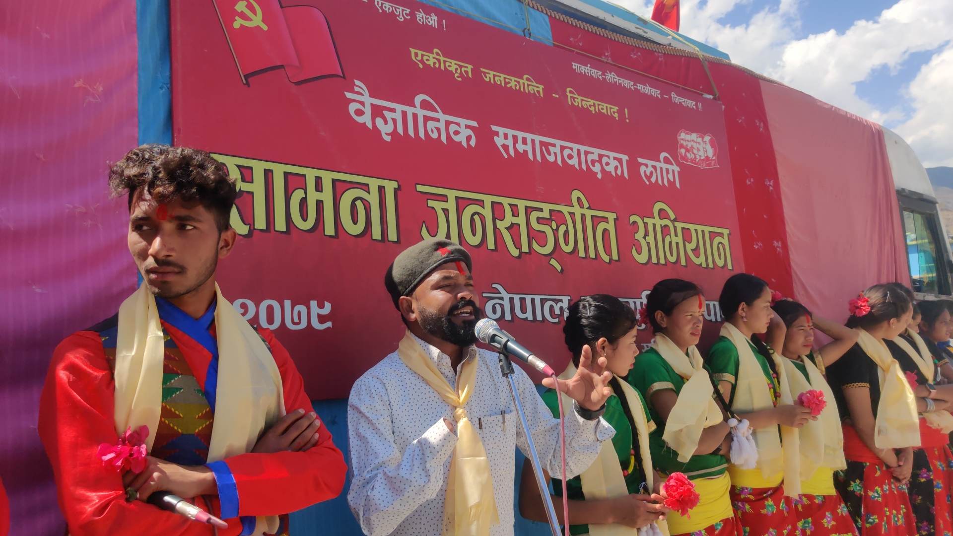 नेपाल कम्युनिस्ट पार्टीले जनसङ्गीत अभियान सुरु गरेको छ । वैज्ञानिक समाजवादका लागि 'सामना जनसङ्गीत अभियान' को नारा बोकेर सामना जनसाँस्कृतिक परिवारले अछामका विभिन्न ठाउँमा साँस्कृतिक कला प्रस्तुत गरिरहेको छ । सामना परिवारका संयोजक क. आरोह सि को नेतृत्वमा आईतवार पञ्चदेवल विनायक,कमलबजार नगरपालिका हुँदै सोमवार साँफेबगर नगरपालिकामा विभिन्न जनक्रान्तिका आवाज बोकेका कला प्रस्तुत गरिएको हो ।…