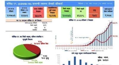 काठमाडौं । पछिल्लो २४ घण्टामा विश्वमा ६ हजार २६१ कोरोना संक्रमितको मृत्यु भएको छ । अघिल्लो २४ घण्टामा ६ हजार ४२४ कोरोना संक्रमितको मृत्यु भएको विश्व स्वास्थ्य संगठनको तथ्यांकमा उल्लेख छ । यस्तै पछिल्लो २४ घण्टामा विश्वमा २ लाख ८१ हजार कोरोना संक्रमित थपिएका छन् । यो अघिल्लो दिनको तुलनामा निकै धेरै हो । अघिल्लो २४…