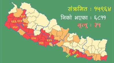 काठमाडौं । नोभेल कोरोना भाइरसका २०४ संक्रमित थपिएका छन् । स्वास्थ्य तथा जनसंख्या मन्त्रालयका प्रवक्ता डा. जागेश्वर गौतमका अनुसार पछिल्लो २४ घण्टामा २०४ संक्रमित थपिएका हुन् । कुल कोरोना संक्रमितको संख्या १६ हजार १६८ पुगेको छ । देशभरका ७७ वटै जिल्लामा कोरोना भारसको संक्रमण फैलिएको छ । हालसम्म देशभर दुई लाख ६१ हजार ८६१ जनाको…