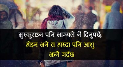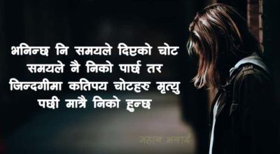 १. मानिसहरु तब मात्र तिम्रो हात समाउछ्न्, जब उनीहरुलाई थाहा हुन्छ कि तिमी एक्लै पनि हिड्न सक्छौ भनेर । २. इज्जत कुनै व्यक्तिको होइन, आवश्यकताको हुन्छ । आवश्यकता सकियो त इज्जत पनि सकियो । ३. प्रेम कुनै पनि व्यक्तिलाई होइन, त्यस व्यक्ति प्रति लगानी गरिएको समय, धन र उसको आकृतिलाई गरिएको हुन्छ । ४. जीवनको…