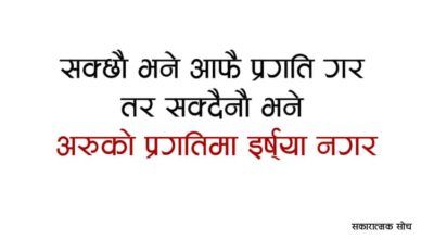 तपाईलाई यी १० महान् भनाईहरु पढ्दा कस्तो लाग्छ ? कृपया कमेन्टमा भन्नुहोला । मन परेमा तपाईले यसलाई सेयर गर्न पनि सक्नु हुन्छ । हामी सकारात्मक सोचमा यस्तै मन छुने तथा जीवन बदल्ने कुराहरु लेखिरहेका हुन्छौँ । १. थाहा छ, रोएर पाउनु केहि छैन । रोएर चाहेको कुरा पाइने भए संसार आँशुमा उहिल्यै डुबीसक्थ्यो । २.…