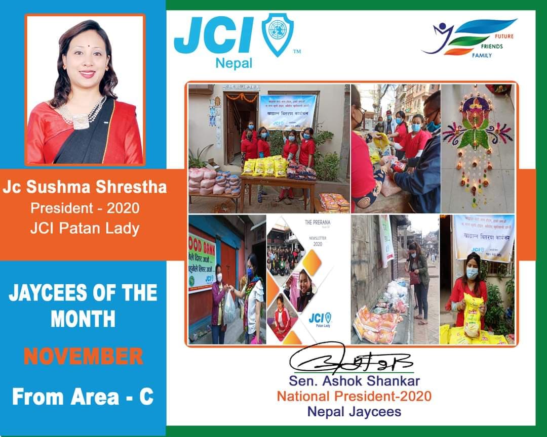 नोभेम्बर महिनाका लागि पाटन लेडी जेसिज देशभरीमा उत्कृष्ट शाखा काठमाण्डौँ । पाटन लेडी जेसिज नेपाल जेसिजबाट पुरुस्कृत भएको छ । नेपाल जेसिजको शाखा पाटन लेडी जेसिज बर्ष २०२० को कार्यसमीती नोभेम्बर महिनाका लागि उत्कृष्ट कार्य गर्न सफल भएको भन्दै पुरस्कृत भएको हो । नोभेम्बर महिनामा देशभरीका अन्य शाखा भन्दा राम्रो काम गरेको भन्दै पाटन लेडी…