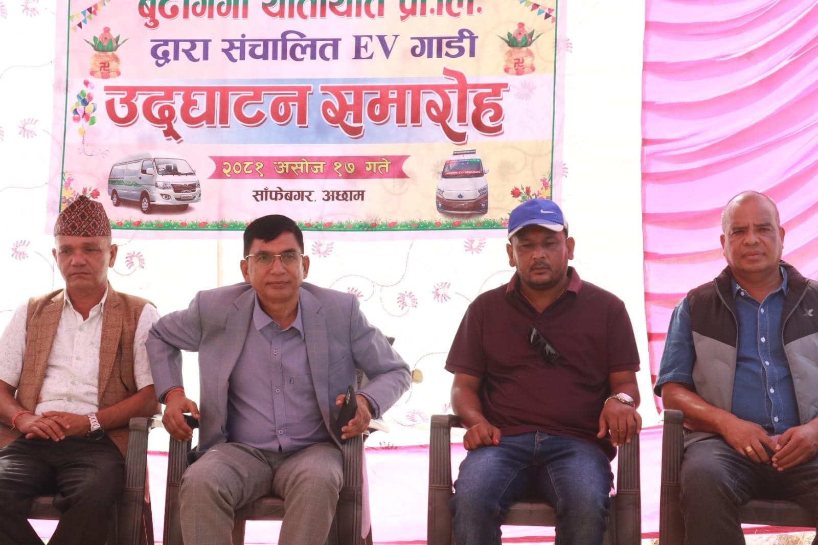 अछाम ः बुढीगंगा यातायात प्रा.लि. अछामले जिल्लामा नयाँ बिद्युतिय गाडी सञ्चालनमा ल्याएको छ । अछाम देखि धनगढी सम्मका लागि सार्वजनिक यातायातका रुपमा बिद्युतिय गाडी सञ्चालनमा ल्याएको हो । हालै दर्ता भएको बुढीगंगा यातायात प्रा.लि. अछामले सञ्चालन गर्ने गरि ६ वटा बिद्युतिय गाडी सञ्चालनमा आएका प्रा.लि.का अध्यक्ष भरत खड्काले बताए । २०८१ सालको बडा दशैको पहिलो…