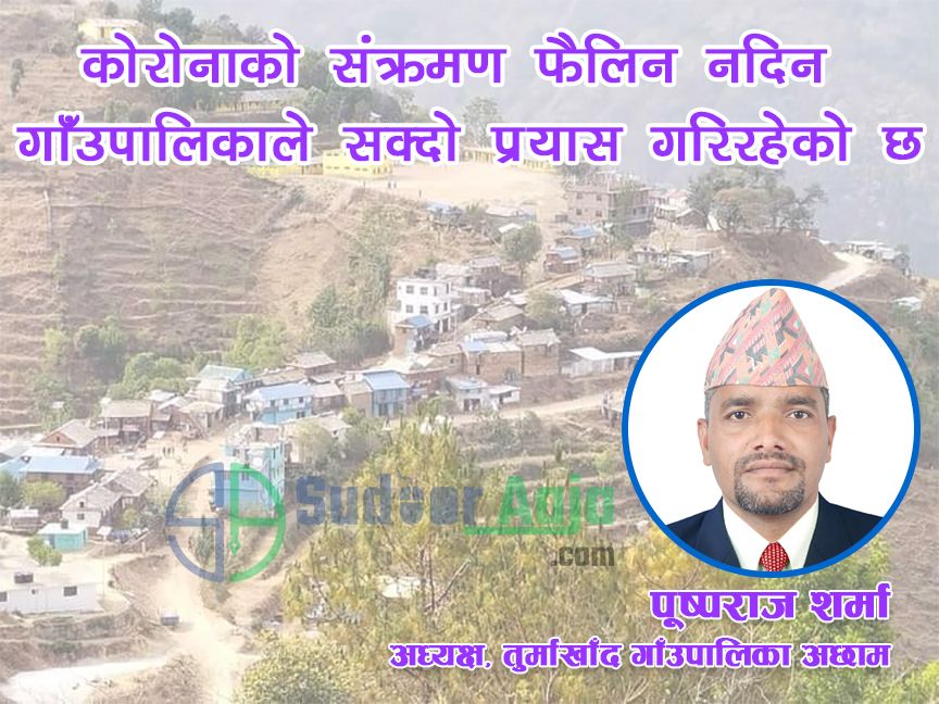 अछाम । जिल्लाको तुर्माखाँद गाउपालिकाका अध्यक्ष पुष्पराज शर्माले लापरबाही र हेल्चेक्राईले कोरोना संक्रमण बढी हुने सक्ने भन्दै सचेत गराएका छन् । जनघनत्व कम भएको पालिकामा लापरबाही नगर्ने हो भने कोराना नफैलिने उनले बताएका हुन् । हरेक नागरिक सचेत बन्दै स्वास्थ्यका सबै मापदण्डहरु पूर्ण रुपले पालाना गर्नुपर्नेमा उनको जोड छ । सुदूरआज संग कुरा गर्दै अध्यक्ष…