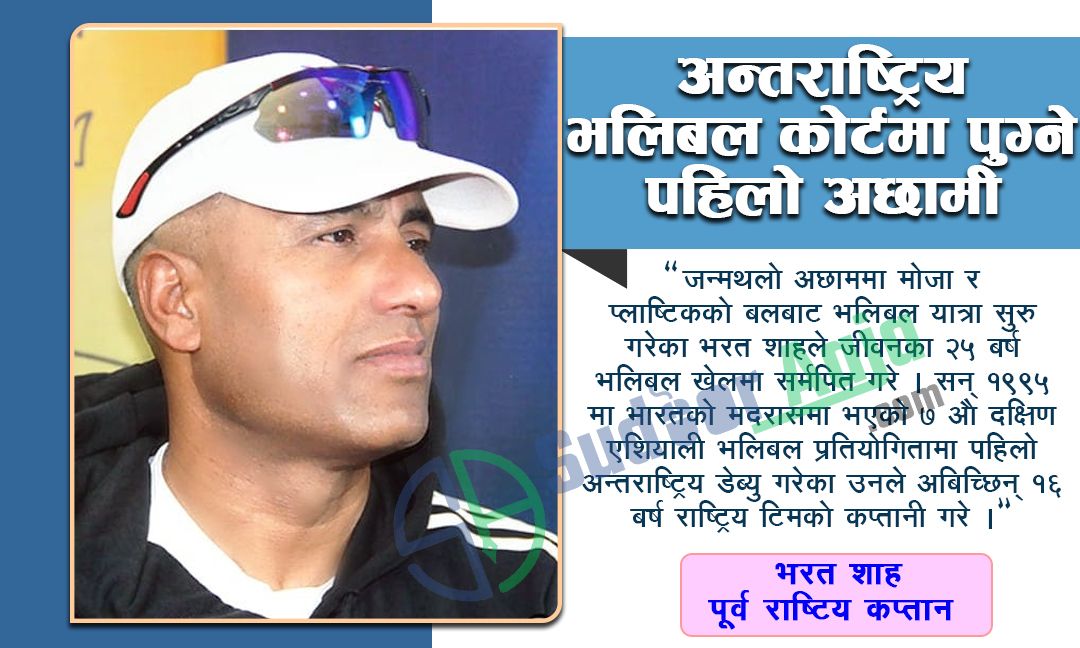 "जीवनका २५ बर्ष भलिबल खेलमा सर्मपित गरेका शाहले १८ बर्ष राष्ट्रिय टिममा रहेर खेले भने १६ बर्ष टिमकै कप्तानी गरे" अछाम । २०२५ सालमा अछाम जिल्लाको साँफेबगर नगरपालिका रिडिकोटमा जन्मेका भरत शाह अन्तराष्ट्रिय भलिबल कोर्टमा पुग्ने पहिलो अछामी खेलाडी हुन् । सन् १९९५ मा भारतको मदरासमा भएको ७ औँ दक्षिण एशियाली खेलकुद प्रतियोगितामा शाह पहिलो…